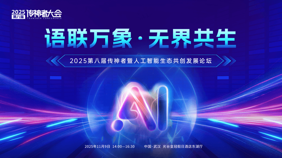 2025第八届传神者大会2025年第八届“传神者大会”由湖北省软件行业协会、湖北省人工智能产业创新联盟、传神语联国家语言服务出口基地、新译科技国家语言服务出口基地、北京语言大学国家语言服务出口基地以及华侨大学国家语言服务出口基地主办。大会以“语联万象・无界共生”为主题,聚焦新生态中的语言、数据、技术、场景、出海与人才等关键要素,共商如何通过跨领域合作革新服务模式、解决技术瓶颈、应对落地挑战、激活商业价值,并最终实现“技术为人,生态向善,万象更新”的愿景。